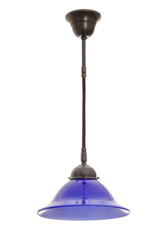 Eine klassische Pendelleuchte für den Alltag, handwerklich gefertigt aus Messing und mundgeblasenem Überfangglas. Der tief indigoblaue, sanft geschwungene Schirm setzt ruhige, blendarme Lichtakzente; Aufhängung und Schirm fügen sich zu einem stimmigen Ganzen im Geist des Jugendstils. Ideal über dem Tisch sowie im Wohn- und Essbereich, in der Küche oder im Flur.