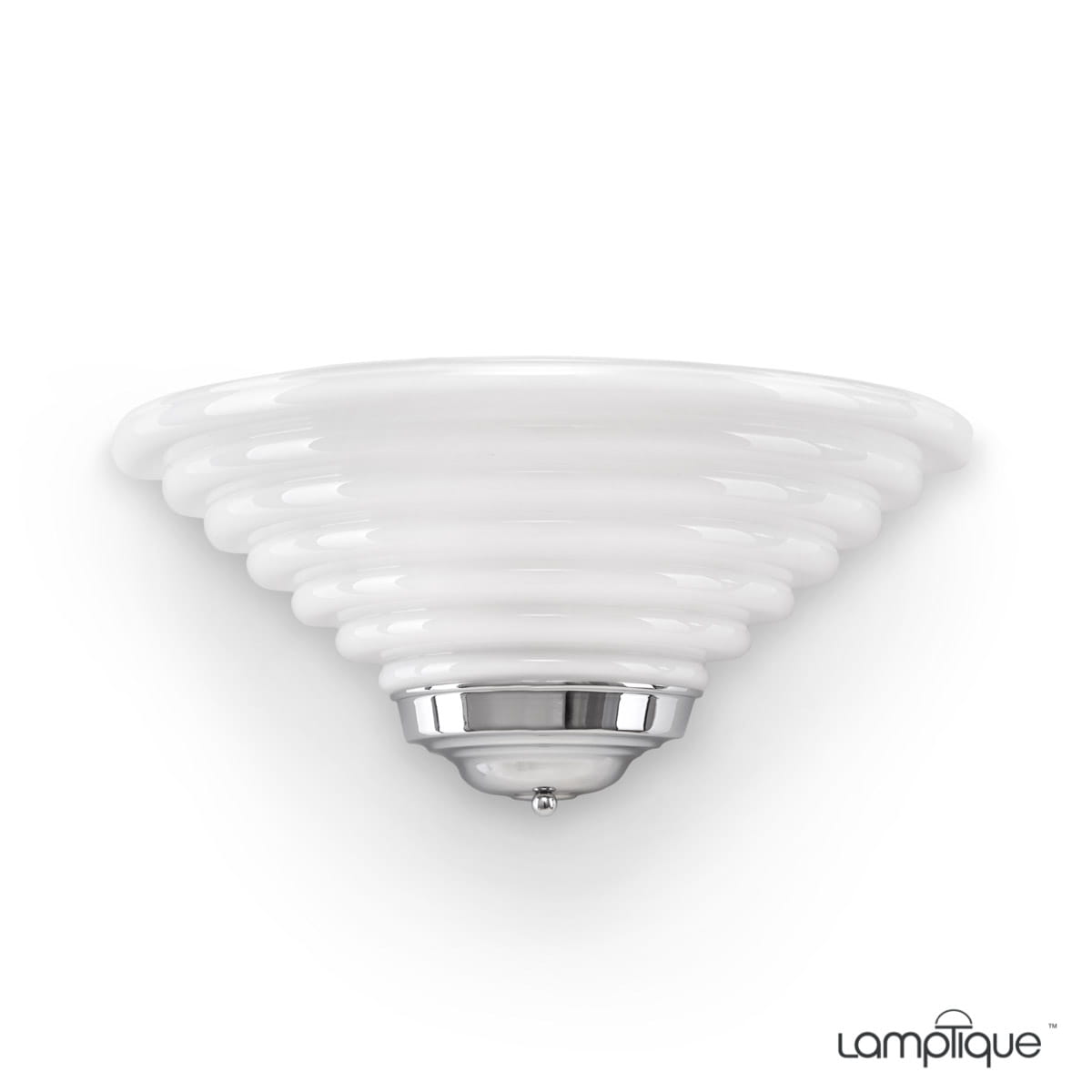 [W1931] Art déco Wandleuchte aus verchromtem Messing mit gestuften Glaslampenschirm